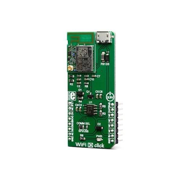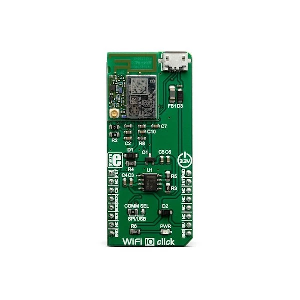 WiFi 10 Click is a Click board™ that offers an ultra-low power wireless connectivity, for any IoT application. It is based on the SX-ULPAN-SB-2401, an integrated wireless LAN module, compliant with the IEEE802.11a/b/g/n wireless networking protocols, at 2.4GHz. The ULPAN-SB-2401 module comes equipped with a PCB trace antenna, but it also offers a small Hirose U. FL connector allowing an external antenna to be used for improved range. The ULPAN-SB-2401 module supports IPv4, TCP, and UDP transfer protocols. It also provides support for WPS, WPA, and WPA2 security protocols, allowing a secure connection.