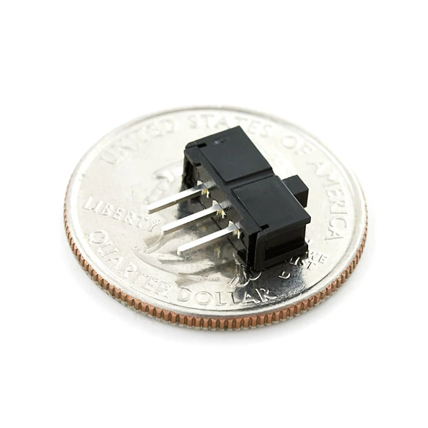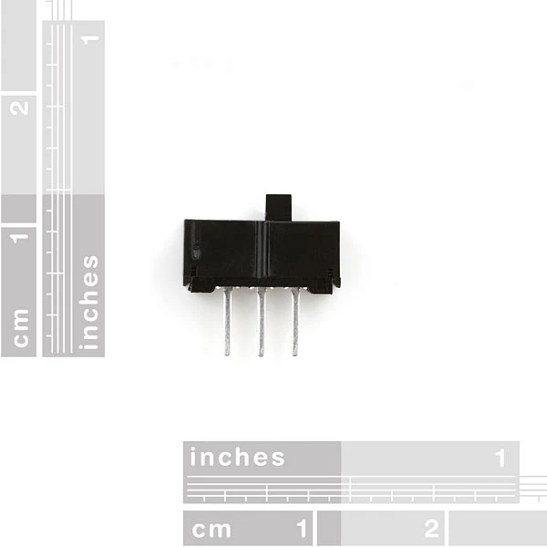 Simple SPDT slide switch. Rated at 30V/200mA. The pins have .1″ spacing – fits great into a breadboard! Use it as a power switch or general control switch.