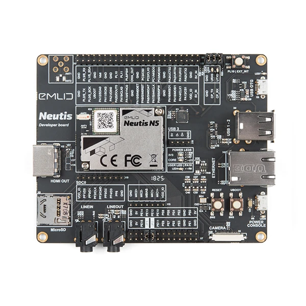 The Neutis N5 Module is loaded with features and this Development Kit makes those features easier to access. Utilizing Neutis’ BSP based on Yocto, the system arrives with an up to date Linux kernel. The system is powered by a 64-bit ARM Cortex-A53 and a ARM Mali450 MPR GPU. It has 512MB of RAM and 8GB eMMC storage. For connectivity, there are a plethora of wired and wireless options at your disposal. For wireless needs, the system rocks 802.11 b/g/n and Bluetooth 4.0 dual-mode BLE all with the built-in antenna.