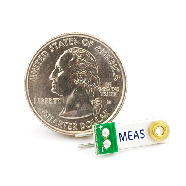 The Minisense 100 from Measurement Specialties is a low-cost cantilever-type vibration sensor loaded by a mass to offer high sensitivity at low frequencies. Useful for detecting vibration and ‘tap’ inputs from a user. A small AC and large voltage (up to +/-90V) is created when the film moves back an forth. A simple resistor should get the voltage down to ADC levels. Can also be used for impact sensing or a flexible switch.