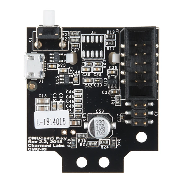 No need to futz around with tiny wires — the Pixy2 comes with a special cable to plug directly into an Arduino and a USB cable to plug into a Raspberry Pi, so you can get started quickly. No Arduino or Raspberry Pi? No problem! The Pixy2 has several interfaces including SPI, I2C, UART, and USB with simple communications, so you get your chosen controller talking to the Pixy2 in short order.