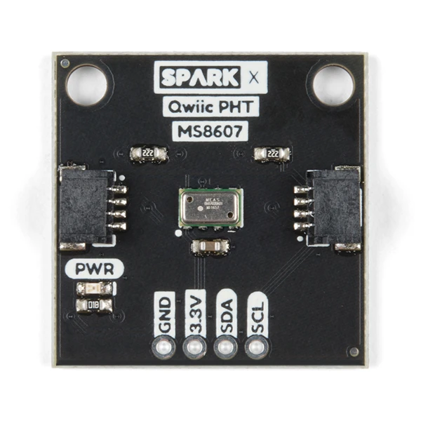 The MS8607 from TE is an impressive combination pressure, humidity, temperature (PHT) sensor with accuracy of ±2mbar pressure, ±3% humidity, and ±1°C. Perfect for sensing general weather conditions the MS8607 really shines for high altitude, low pressure applications. Capable of sensing down to 10mbar, this pressure sensor separates itself from many other I2C pressure sensors like the BME280. The MS8607 is simple to use and gives the user some very powerful readings with very little power and conversion time.