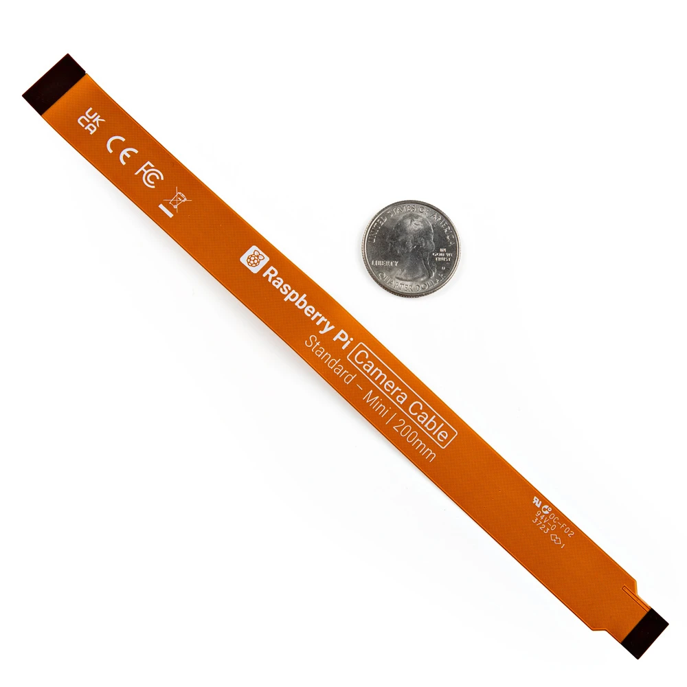 This is a 200mm camera cable for use with MIPI displays and the Raspberry Pi 5. The Raspberry Pi 5 provides two four-lane MIPI connectors, each of which can support either a camera or a display. These connectors use the same 22-way, 0.5mm-pitch “mini” FPC format as the Compute Module Development Kit, and require adapter cables to connect to the 15-way, 1mm-pitch “standard” format connectors on our current camera and display products.