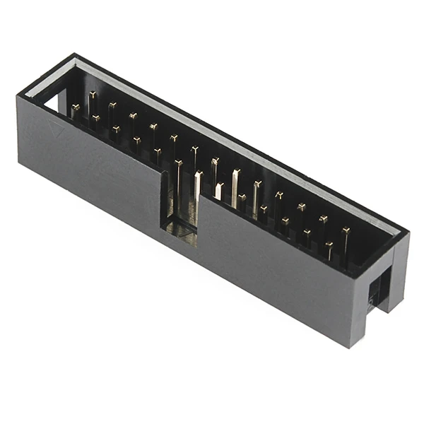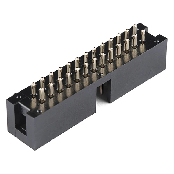 This 2×13 shrouded header has the same number and spacing of pins as the Raspberry Pi so you can easily connect via ribbon cable to the low-level peripherals and get hacking! This through-hole header has 26 0.1″-spaced pins and is keyed for polarity.