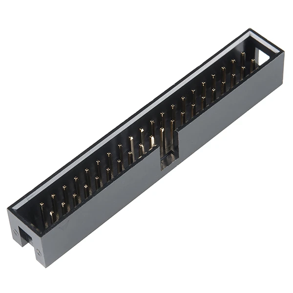 This 2×20 shrouded header has the same number and spacing of pins as a Raspberry Pi so you can easily connect via ribbon cable to the low-level peripherals and get hacking! This through-hole header has 40 0.1″-spaced pins and is keyed for polarity.