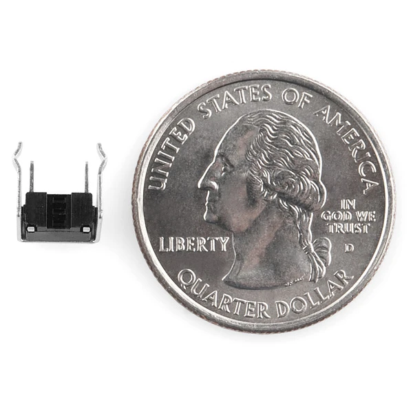 This right-angle tactile switch has a great ‘click’ to it. Also, because it’s a through-hole design it’s very sturdy. Mount it on the edge of your board for easy access. These are rated for 12VDC at 50mA.