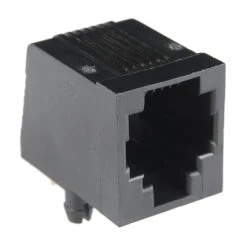Through-hole RJ11 socket with PCB mounting posts. 6-pin connection – housing accepts common telephone connectors/wiring.