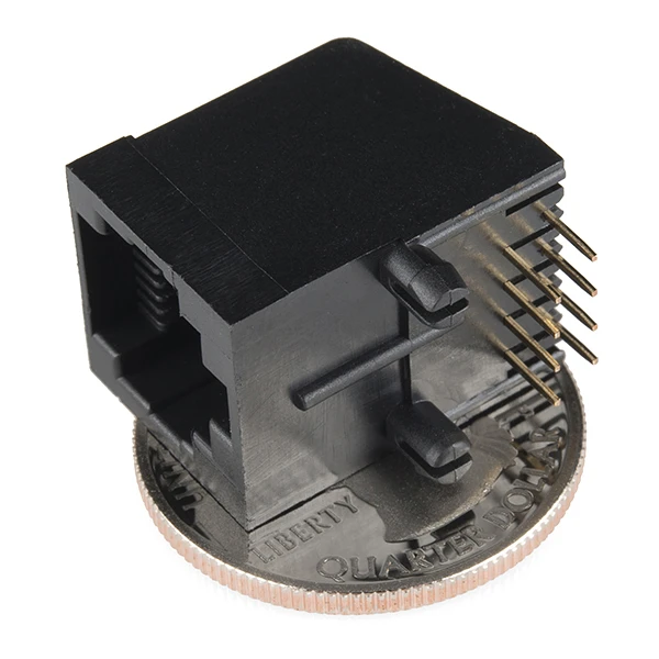 These are simple through-hole RJ45 sockets with PCB mounting posts. These 8-pin connectors are commonly used in conjunction with Cat5, Cat5e, and Cat6 Ethernet cables. Because Ethernet cable is so ubiquitous, these are awesome for projects where you need to string a lot of modules together over a distance.