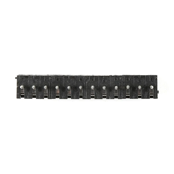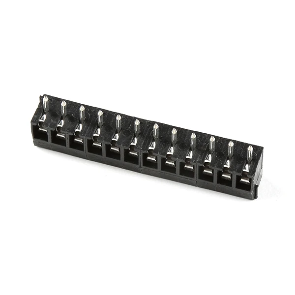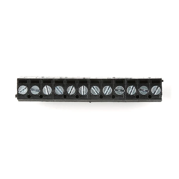 These are simple 12-position screw terminals with 3.54mm pitch pins. Rated up to 125V @ 10A, this terminal can accept 26 to 16AWG wire. The 3.5mm pitch will line up with standard 0.1″ perf boards.