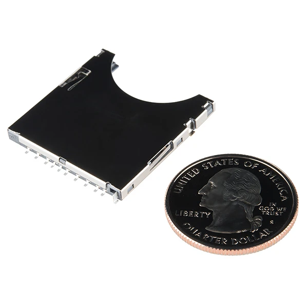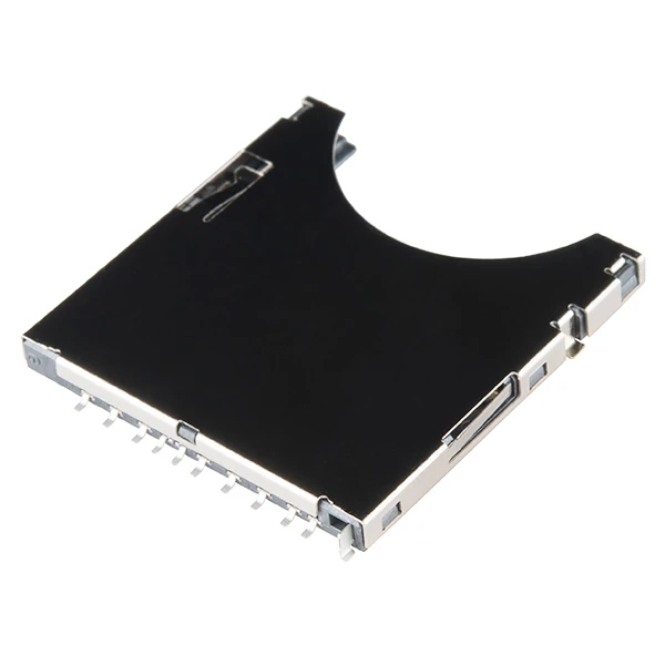 SD cards are all over the place and they’re great for storing large amounts of data. Why not take advantage by adding an SD socket to your next data heavy project. We use it on a whole bunch of our boards! The SD/MMC ( Secure Digital Disk / Multi Media Cards) cards use a very simple SPI serial bus as well as a 4-bit proprietary bus.