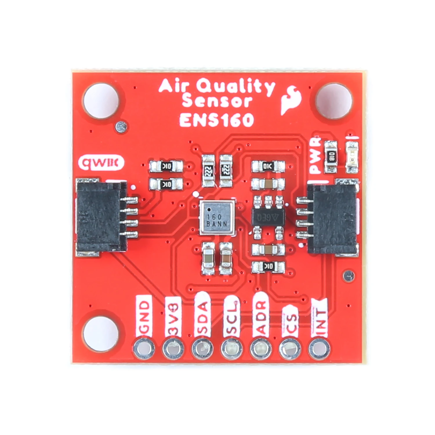 The SparkFun ENS160 Indoor Air Quality Sensor is a digital multi-gas sensor solution with four sensor elements that can be used in a wide range of applications including building automation, smart home, and HVAC. The independent hotplate control allows the detection of volatile organic compounds (VOCs) including ethanol, toluene, hydrogen, and oxidizing gases with superior sensitivity. The ENS160 supports intelligent algorithms to process raw sensor measurements on-chip. These algorithms calculate CO2-equivalents, TVOC, air quality indices (AQIs), and perform humidity and temperature compensation, as well as baseline management, all on-chip. Raw sensor measurements can be read for further customization.