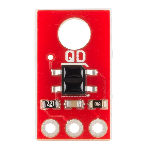 This version of the QRE1113 breakout board features a digital output, using a capacitor discharge circuit to measure the amount of reflection. This tiny board is perfect for line sensing when only digital I/O is available, and can be used in both 3.3V and 5V systems.