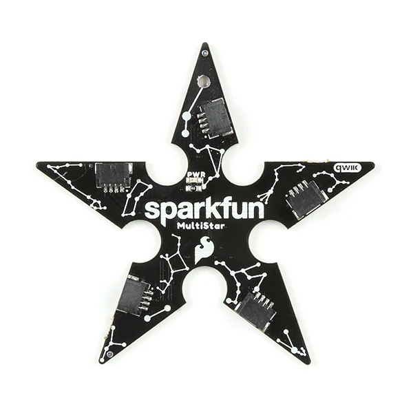 Have you ever had problems trying to daisy chain Qwiic-enabled boards with only ONE Qwiic connector? Or maybe you need a Qwiic-enabled device that is not in the middle of a daisy chain? The SparkFun Qwiic MultiStar adds four additional ports to boards that have only one Qwiic port on the I2C bus. Even though there are five points to the star, one is required to connect to your main board. Due to popular demand (and a few too many ordered), we have reworked the MultiStar into a working (and much safer) celestial version of the MultiPort with five Qwiic connectors. Once added, you can use it as a hub to add as many I2C devices to the bus as you need!