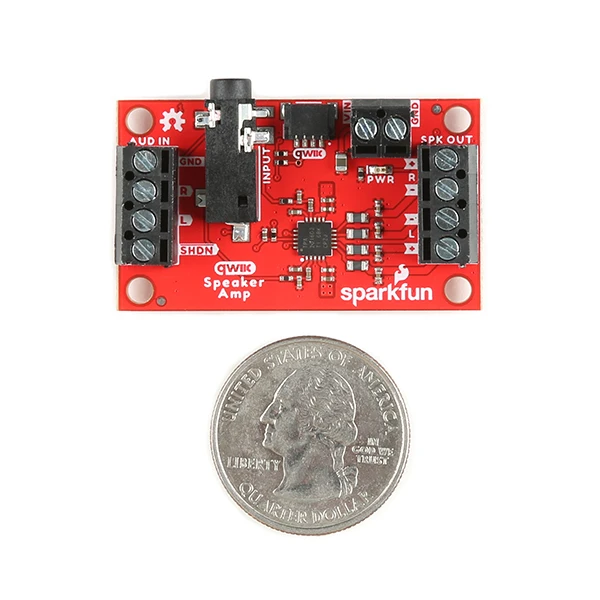This board is great for projects that require you to amplify an audio signal for small, differential speakers. This breakout is also great when pairing it with your smartphone, computer, portable digital player, or any audio boards (such as the MP3 Trigger, Tsunami Super WAV Trigger, MP3 Player Shield, or Music Instrument Shield to name a few)! Add the Qwiic Speaker Amp in your next portable projects such as sound effects for your spooky Halloween pumpkin, wearable costumes, props, talking greeting cards, or USB speakers.
