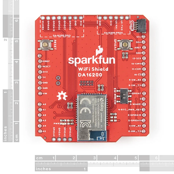Ultra. Low. Power. Arguably the best three words in the IoT world. SparkFun has teamed up with ARM and Dialog to provide you with this Qwiic WiFi Shield based around the DA16200 module. The DA16200 is a fully integrated WiFi module with a 40MHz crystal oscillator, 32.768KHz RTC clock, RF Lumped RF filter, 4MB flash memory, and an on-board chip antenna. With the addition of a Qwiic connector, multiple GPIO options, JTAG connectors for deep dive programming, and you’ve got everything you need to get your R3 layout device ready to set up your next IoT project.