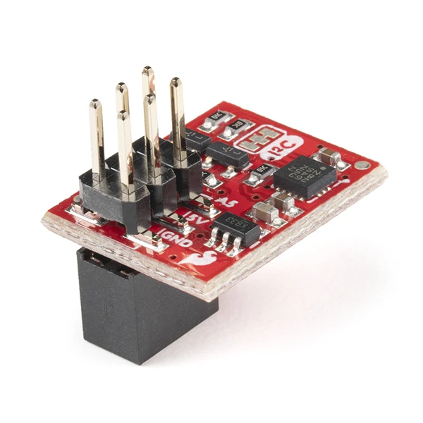 The sensor has two 2×3 headers (one male and one female) which connect directly to the RedBot Mainboard giving you the ability to stack another I2C sensor. Just use the included RedBot library to detect bumps and motion.