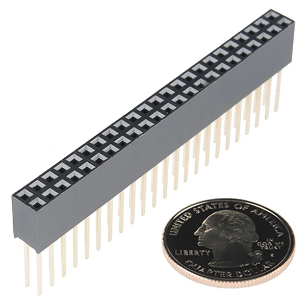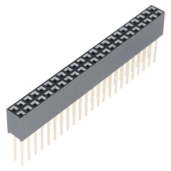 This is a 2×23 pin female PTH header, with extra long legs which makes great for stacking. This piece is in the common configuration for Beaglebone Black headers. Each pin has a spacing of 0.1″ in between each other.