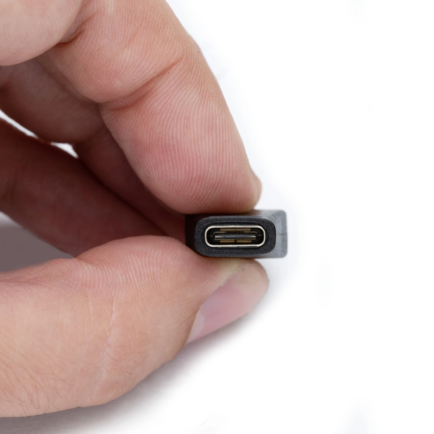 USB 3.1 Type C Female to USB 3.0 A Male Data Adapter is a USB C(female) to USB A (male) converter for connecting USB C/Type C devices like USB-C smartphones, tablets, laptops, and power banks to charge and sync data, and many more. It supports USB 3.0 and OTG and offers data transfer speeds of up to 5Gbps between connected devices. Besides, it also supports up to 2.4Amps of power output for charging your devices. It’s tested and inspected to meet USB Standards, fit for USB 3.0 / USB 2.0 devices, and built with a 56KΩ pull-up resistor to protect your devices from damage. Also, no driver is required, making it an easy “plug-and-play” solution without needing a connector orientation check. Thanks to its small dimensions, 50x30x20 millimeters (L x W x H), it is very convenient to carry in any pocket or wallet without being a burden.