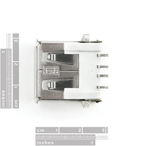 USB Type ‘A’ Female SMD connector. For use with any PCB that will be used with a Type A to Type A USB cable. Designed to mount to the UBW32.